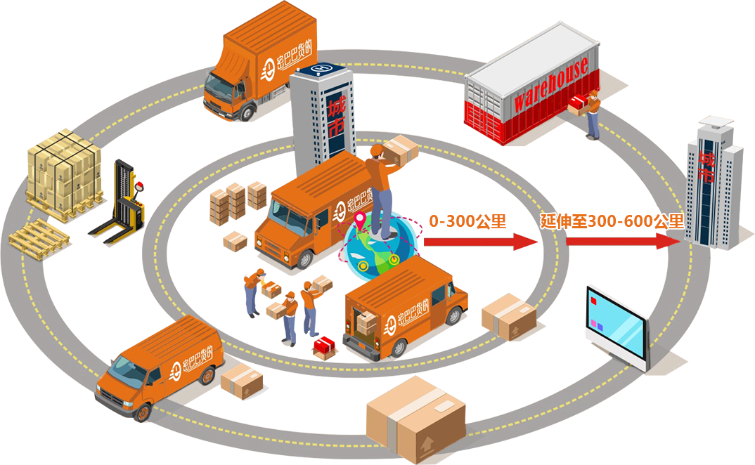 以市区及周边地区为核心,专注服务于0-600公里范围内的中短途物流配送